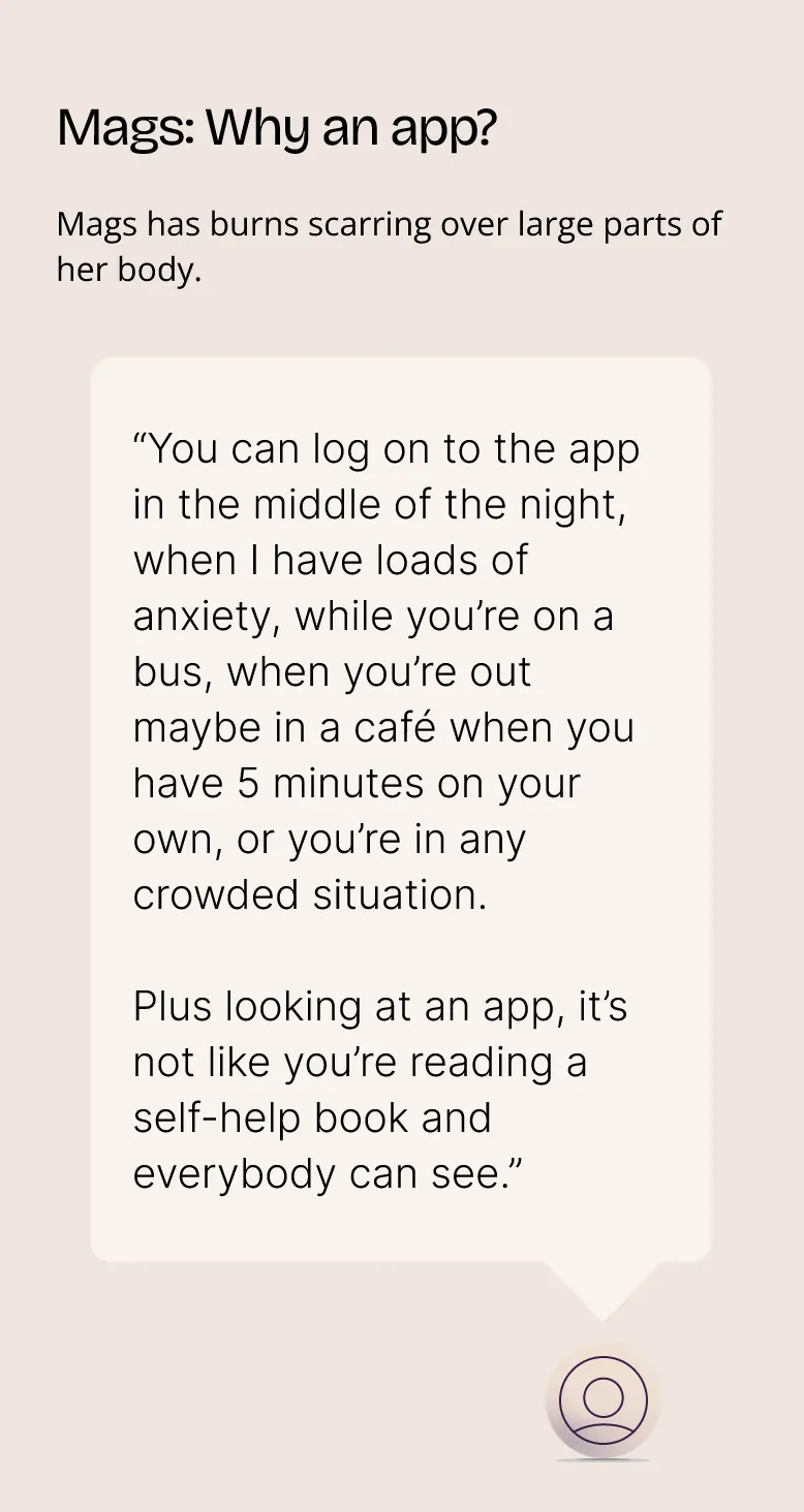 The app focuses on helping users manage social anxiety, body image concerns, and self-esteem through structured, skill-based learning. It’s designed for individuals with visible differences caused by conditions or injuries, offering practical tools to help them navigate everyday social situations with more confidence.