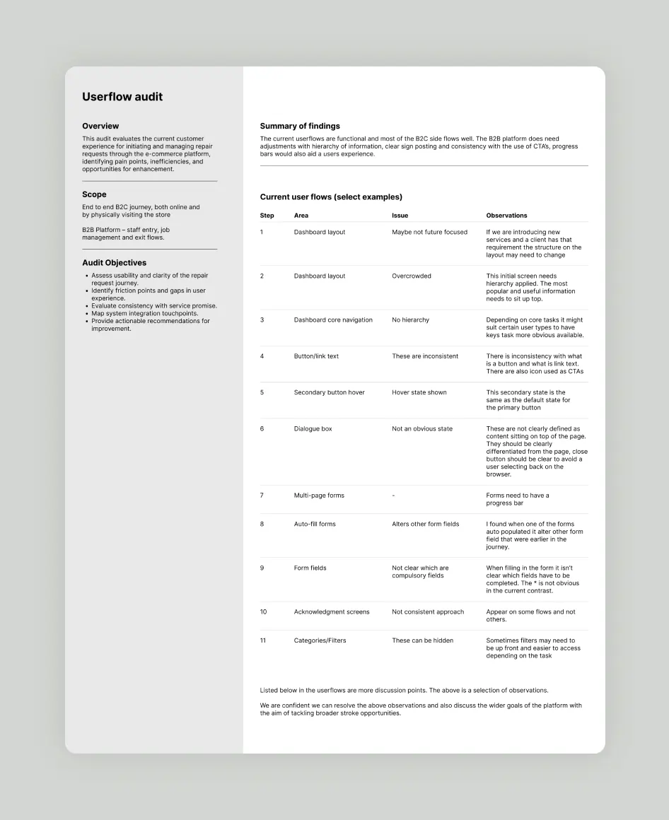 We conducted an audit to pull out any of our observations on top of the client feedback, this outlined our objectives clearly and gave confidence on the client side about what to expect at the end of the process.