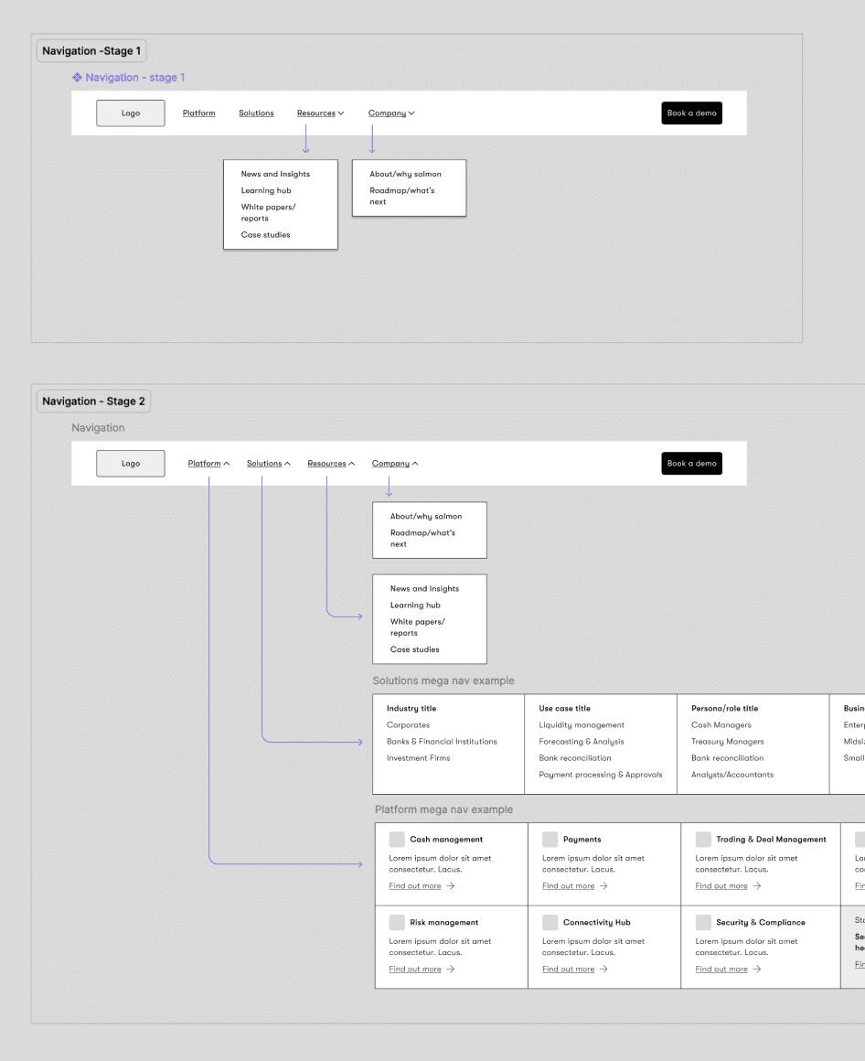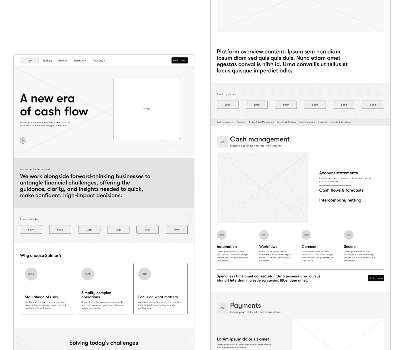 I started with research, looking at the different user groups engaging with the platform, from cash managers to treasury leads and analysts. Each had different priorities, so the challenge was to create a clear, structured experience that could speak to all personas including those not as familiar with the sector.