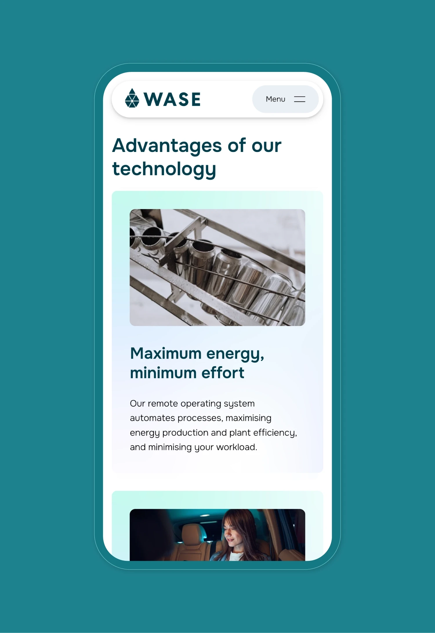 Alongside the brand and messaging work, my role focused on shaping the website experience so it actually delivered on all of that thinking. WASE had a genuinely powerful proposition, but it wasn’t coming through in how the product was experienced online. The complexity of the technology made it hard for people to quickly grasp what they did, why it mattered, and what to do next.